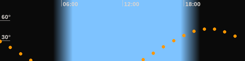 | Aufgang | 13:41 Uhr im Osten (αAz = 76°) |