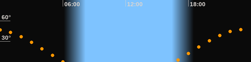 | Aufgang | 16:35 Uhr im Osten (αAz = 76°) |