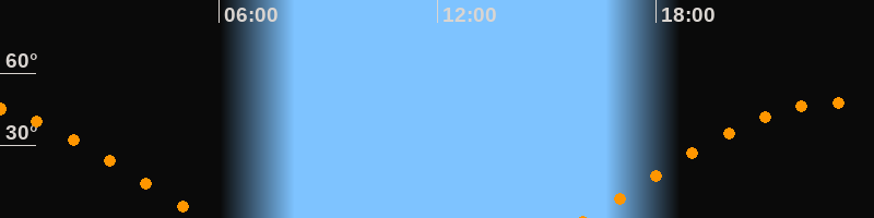 | Aufgang | 16:04 Uhr im Osten (αAz = 76°) |