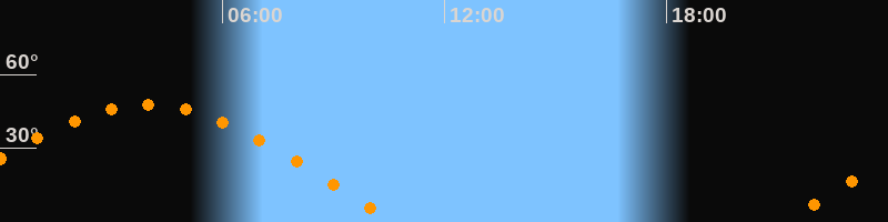 | Aufgang | 21:09 Uhr im Osten (αAz = 76°) |