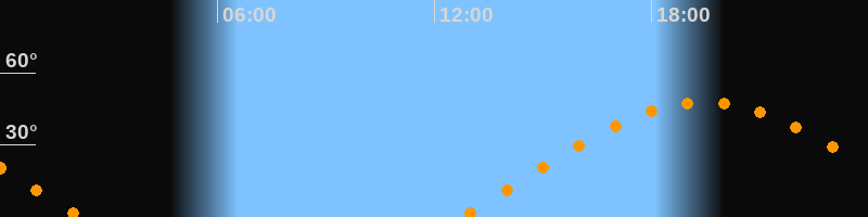 | Aufgang | 12:43 Uhr im Osten (αAz = 76°) |