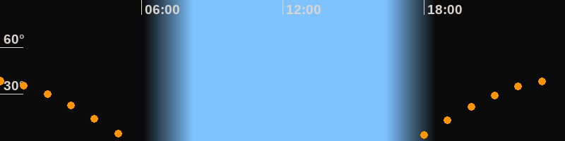 | Aufgang | 17:31 Uhr im Osten (αAz = 90,1°) |