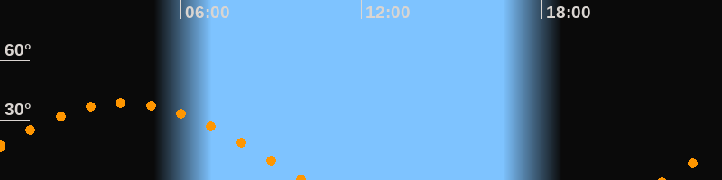 | Aufgang | 22:03 Uhr im Osten (αAz = 90,1°) |