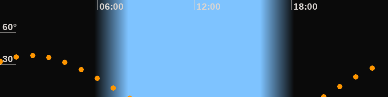 | Aufgang | 19:52 Uhr im Osten (αAz = 90,1°) |