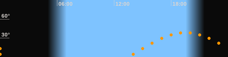 | Aufgang | 13:29 Uhr im Osten (αAz = 90,1°) |
