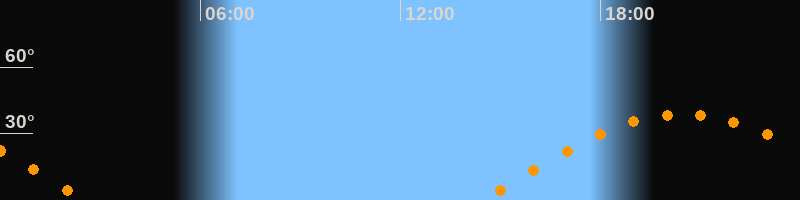 | Aufgang | 14:29 Uhr im Osten (αAz = 90,1°) |