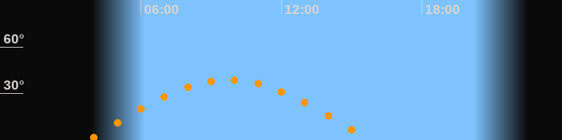 | Höchster Stand (Kulmination) | 09:45 Uhr (h = 38,7°) |