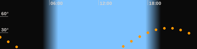 | Aufgang | 14:25 Uhr im Osten (αAz = 90,1°) |