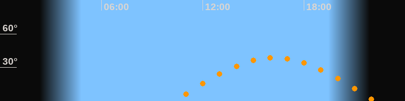 | Höchster Stand (Kulmination) | 16:15 Uhr (h = 38,7°) |