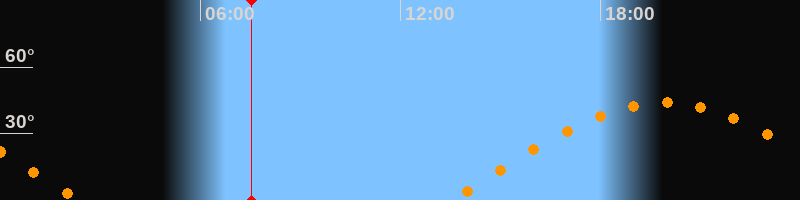 | Aufgang | 13:29 Uhr im Osten (αAz = 82°) |