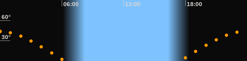 | Untergang | 06:19 Uhr im Westen (αAz = 278°) |
