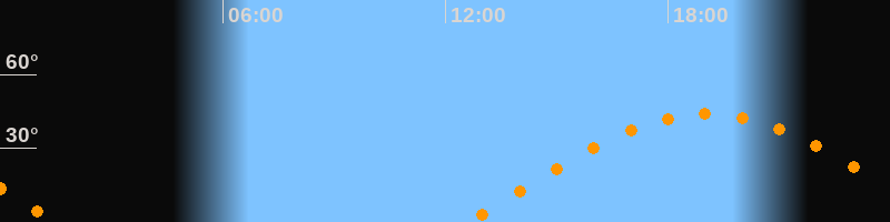 | Höchster Stand (Kulmination) | 19:02 Uhr (h = 43,9°) |