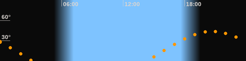 | Aufgang | 14:16 Uhr im Osten (αAz = 82°) |