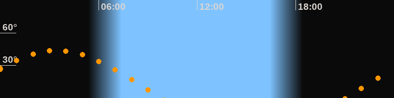 | Höchster Stand (Kulmination) | 03:27 Uhr (h = 43,9°) |
