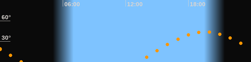 | Höchster Stand (Kulmination) | 19:36 Uhr (h = 43,9°) |