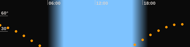| Aufgang | 16:27 Uhr im Osten (αAz = 82°) |
