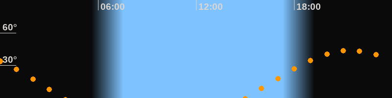 | Aufgang | 15:00 Uhr im Osten (αAz = 82°) |