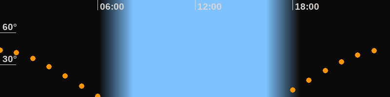 | Aufgang | 17:15 Uhr im Osten (αAz = 82°) |