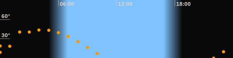 | Höchster Stand (Kulmination) | 04:24 Uhr (h = 43,9°) |