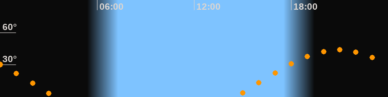 | Aufgang | 14:30 Uhr im Osten (αAz = 82°) |