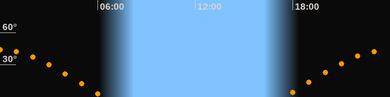 | Aufgang | 17:28 Uhr im Osten (αAz = 82°) |