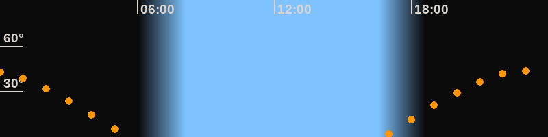 | Untergang | 05:37 Uhr im Westen (αAz = 278°) |