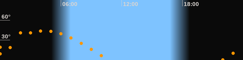 | Höchster Stand (Kulmination) | 04:21 Uhr (h = 43,9°) |