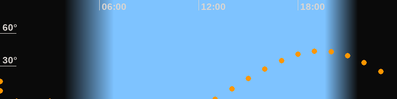 | Höchster Stand (Kulmination) | 19:21 Uhr (h = 43,9°) |