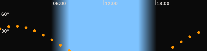 | Höchster Stand (Kulmination) | 01:43 Uhr (h = 43,9°) |