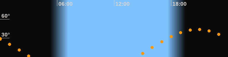 | Aufgang | 14:19 Uhr im Osten (αAz = 82°) |