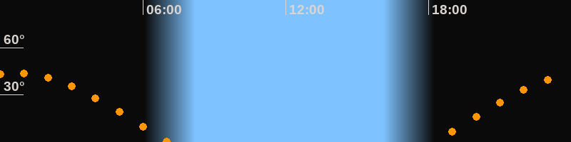 | Untergang | 07:07 Uhr im Westen (αAz = 278°) |
