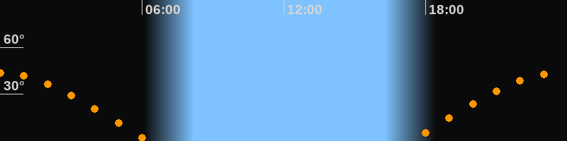 | Untergang | 06:16 Uhr im Westen (αAz = 278°) |