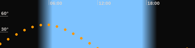 | Höchster Stand (Kulmination) | 05:34 Uhr (h = 43,9°) |