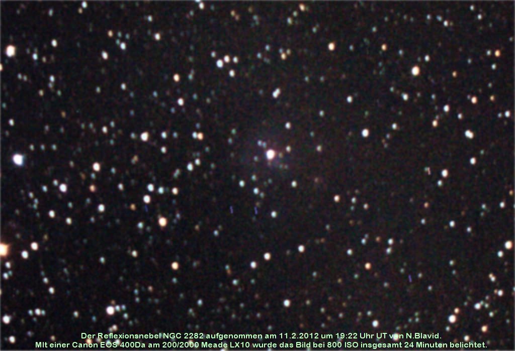 NGC 2282 ist ein Reflexionsnebel, der durch den Stern UCAC4-457-022546 (10,2 mag) beleuchtet wird.