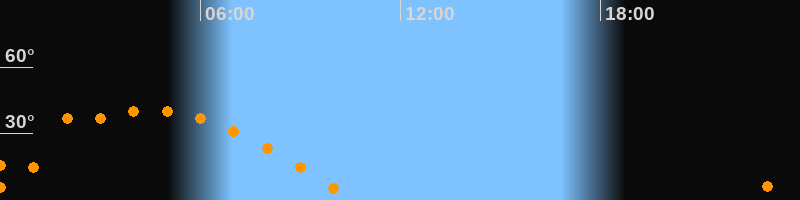| Höchster Stand (Kulmination) | 04:29 Uhr (h = 40,6°) |