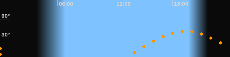 | Aufgang | 13:10 Uhr im Osten (αAz = 87,2°) |
