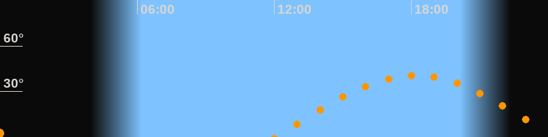 | Höchster Stand (Kulmination) | 18:10 Uhr (h = 40,6°) |