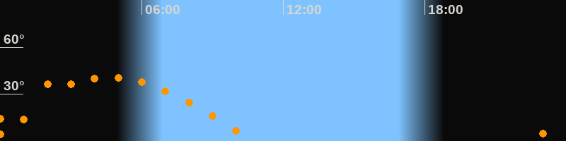 | Untergang | 10:46 Uhr im Westen (αAz = 272,8°) |