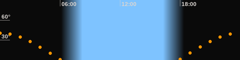 | Untergang | 06:09 Uhr im Westen (αAz = 272,8°) |