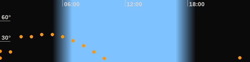 | Untergang | 10:38 Uhr im Westen (αAz = 272,8°) |
