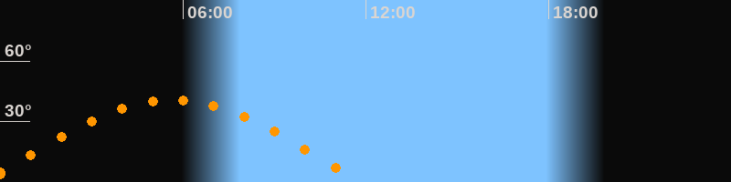 | Höchster Stand (Kulmination) | 05:39 Uhr (h = 40,6°) |