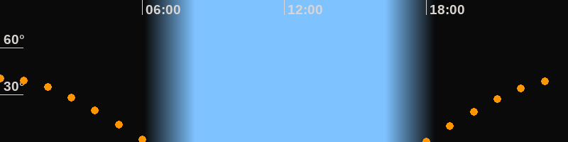 | Untergang | 06:14 Uhr im Westen (αAz = 272,8°) |