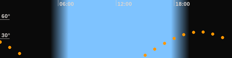 | Aufgang | 14:27 Uhr im Osten (αAz = 87,2°) |