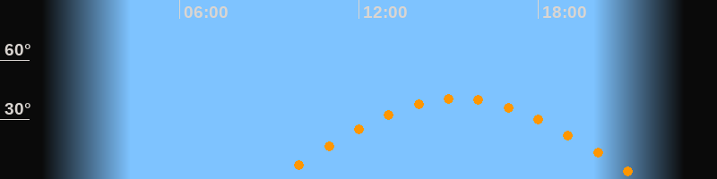 | Aufgang | 09:10 Uhr im Osten (αAz = 87,2°) |