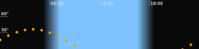 | Aufgang | 22:03 Uhr im Osten (αAz = 93,8°) |