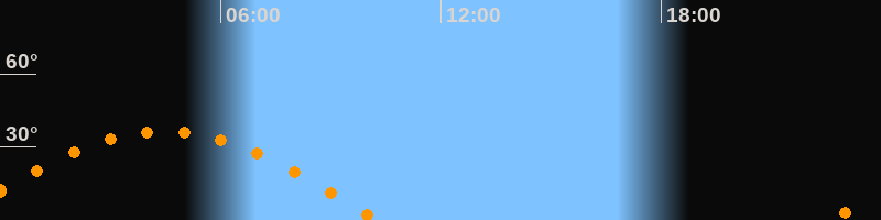 | Untergang | 10:16 Uhr im Westen (αAz = 266,2°) |
