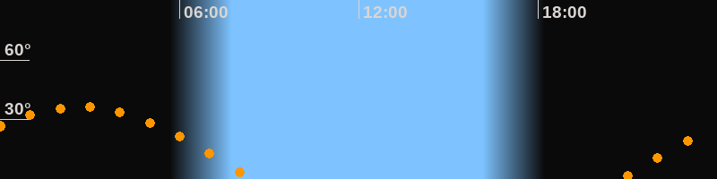 | Aufgang | 20:46 Uhr im Osten (αAz = 93,8°) |