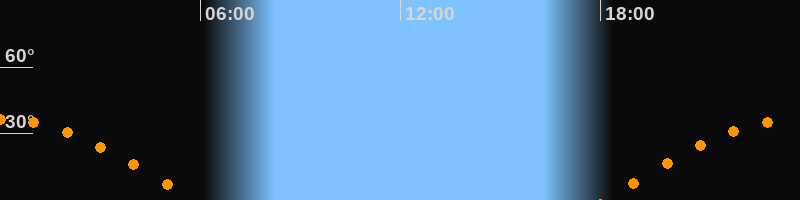| Aufgang | 18:07 Uhr im Osten (αAz = 93,8°) |