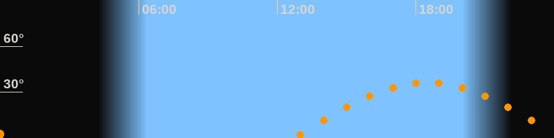 | Höchster Stand (Kulmination) | 18:30 Uhr (h = 36,4°) |