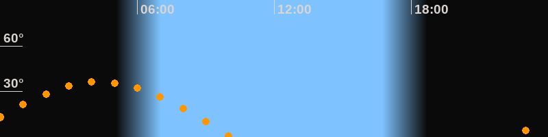| Aufgang | 22:28 Uhr im Osten (αAz = 93,8°) |